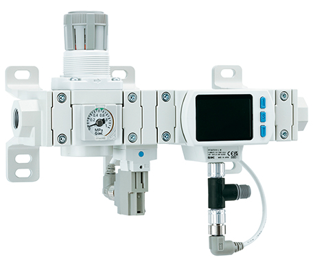 Air Management System Серия AMS20X/60X-X2044/X2045 Описание на продукта Каталожна информация Air Management System IO-Link compatibleMonitoring compressed air condition via IO-Link and reduction of air consumption Standby regulator+Digital flow switch[Suffix: -X2044]Operation mode ⇔ Standby mode Digital flow switch+Residual pressure relief 3-port solenoid valve (With soft start-up function)[Suffix: -X2045] Operation mode ⇔ Isolation mode. Каталожна информация