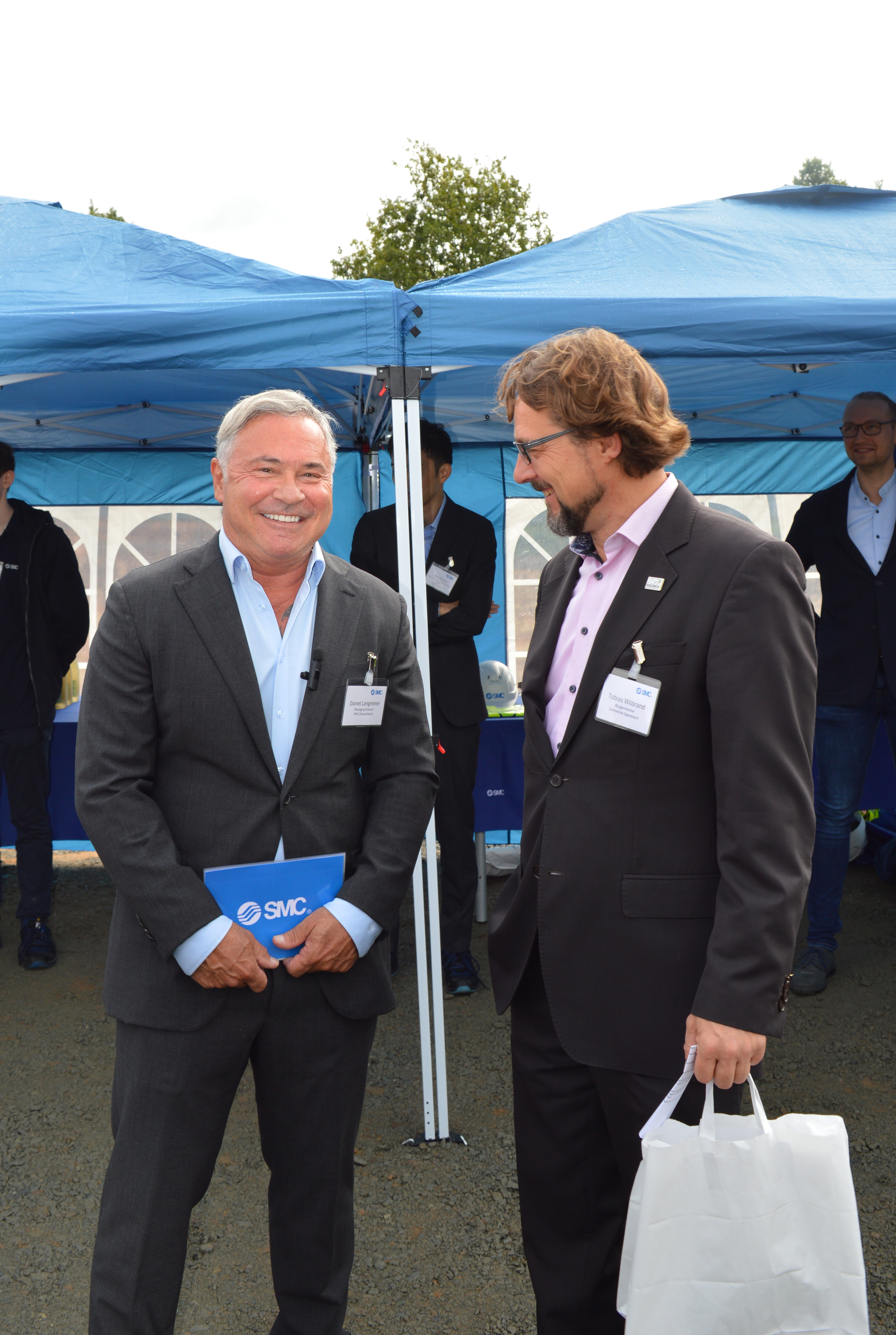 Anschließend erläuterte Daniel Langmeier, Geschäftsführer der SMC Deutschland GmbH, die Pläne des Unternehmens: „Deutschland ist innerhalb der SMC Gruppe ein Innovationsland. Mit dem Campus bauen wir Forschung und Entwicklung gezielt aus – mit neuen Laboren, Testräumen und modernen Büros. In Summe investieren wir hier in Egelsbach 100 Millionen Euro.“
